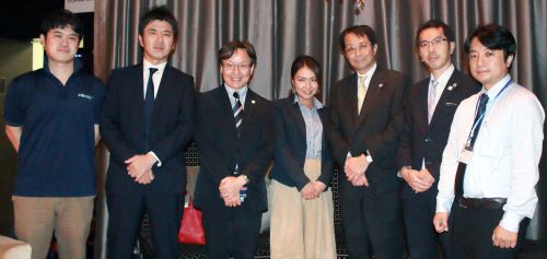 左から柏村委員、高村委員、辻村マレーシア分校設置準備長、山本委員、永田恭介学長、石川書記官、大庭準教授