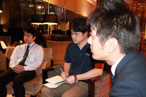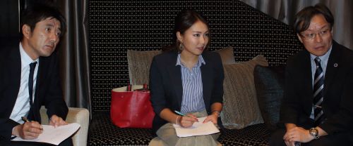 取材風景 右から辻村真貴マレーシア分校設置準備室長(生命環境系教授)、山本委員及び高村委員